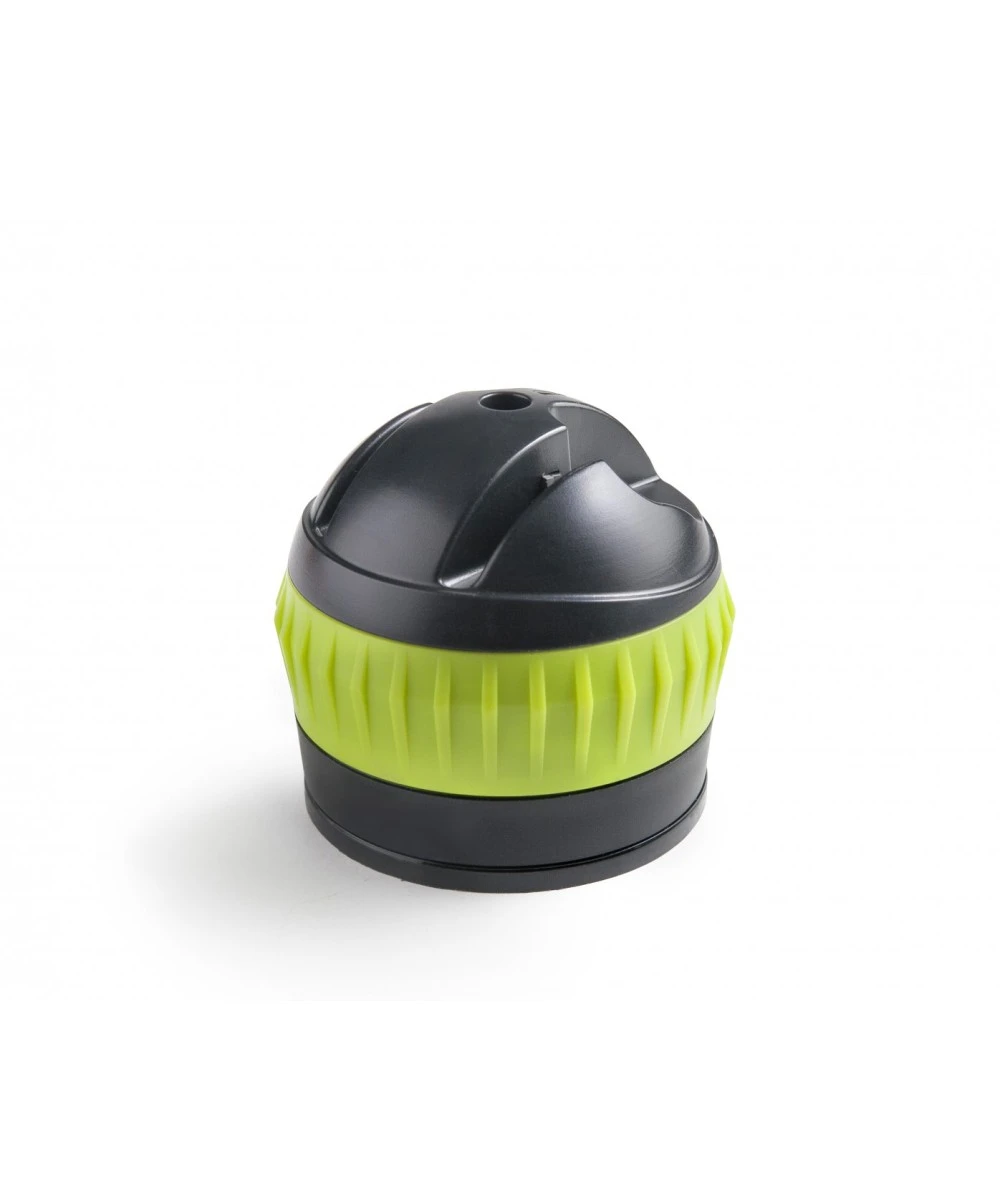 Afilador de cuchillos redondo compacto con dos piedras. Girando la anilla central, el afilador se adhiere totalmente a la superficie lisa permitiendo así un afilado seguro. Podrá afilar sus cuchillos finos o gruesos.