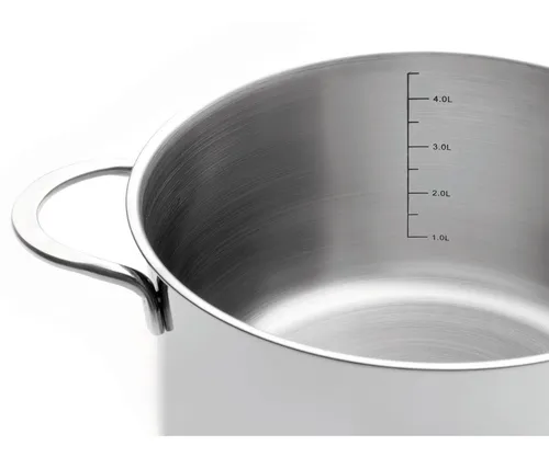 Cacerola de acero inoxidable IBILI, la cacerola cuenta con medidas internas para líquidos, incluye