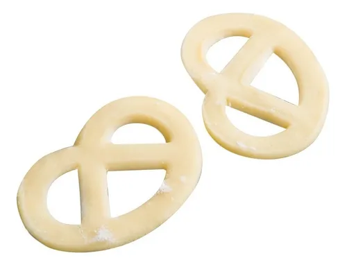 La forma prezel de abrazo, brazos entrelazados o lazo, a veces resulta difícil de conseguir, por eso nos serviremos de este práctico cortador de galletas prezel que nos ayudará a obtener esta forma y además todas las galletas o pastas las obtendremos de igual tamaño con lo que se mejorará la presentación en la mesa.