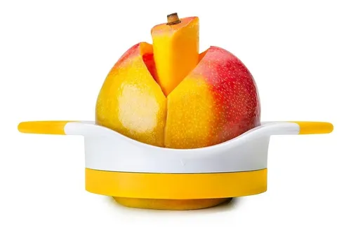 Cortador deshuesador de mango, la cuchilla esta fabricada en acero inoxidable, y el resto es plastico de alta calidad y resistente. Con este cortador podras quitar el hueso al mango de una forma muy fácil y practica.