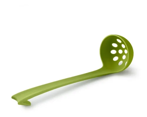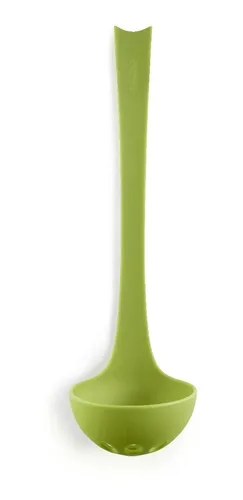 Este cucharon está fabricado en nylon, en color verde.