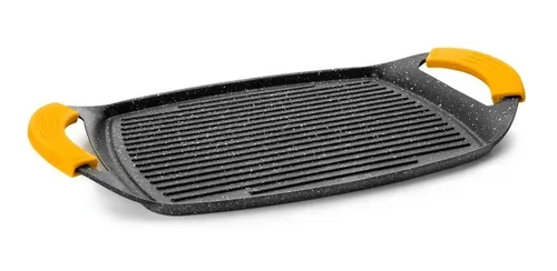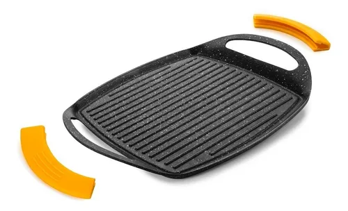 Grill plancha ondulado IBILI. Este grill o plancha es de aluminio fundido para inducción, antiadherente estilo piedra duro y resistente. Libre de PFDA. Asas se silicona desmontables y fondo de acero inoxidable 18%. Funciona con estufas de gas, vitro, eléctricas y también para inducción. También se puede meter al horno sin las asas.