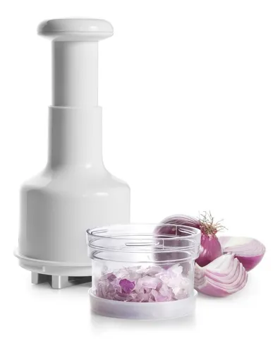 Picador de cocina manual IBILI, este picador tiene un pequeño contenedor con tapa, es ideal para picar cebollas, ajos, chiles, almendra, etc. La picadora es de plástico y las cuchillas de acero inoxidable.