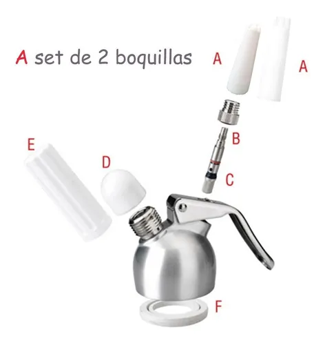 Repuesto para sifon Marca Ibili, el repuesto es un set de dos boquillas de plástico para sifón, son las que están marcadas con la letra A, en color rojo.