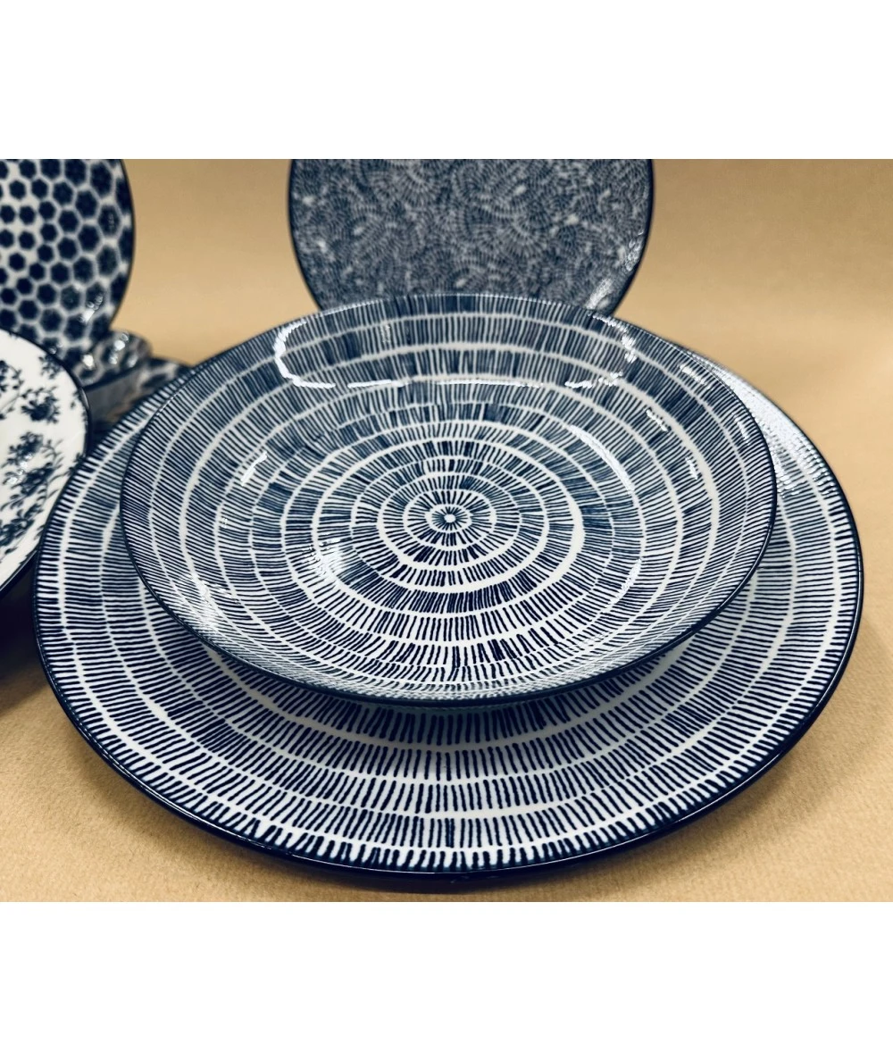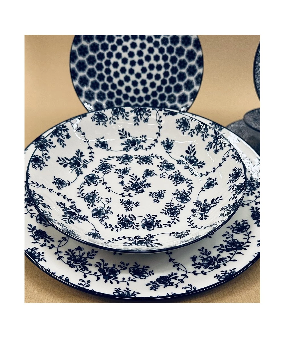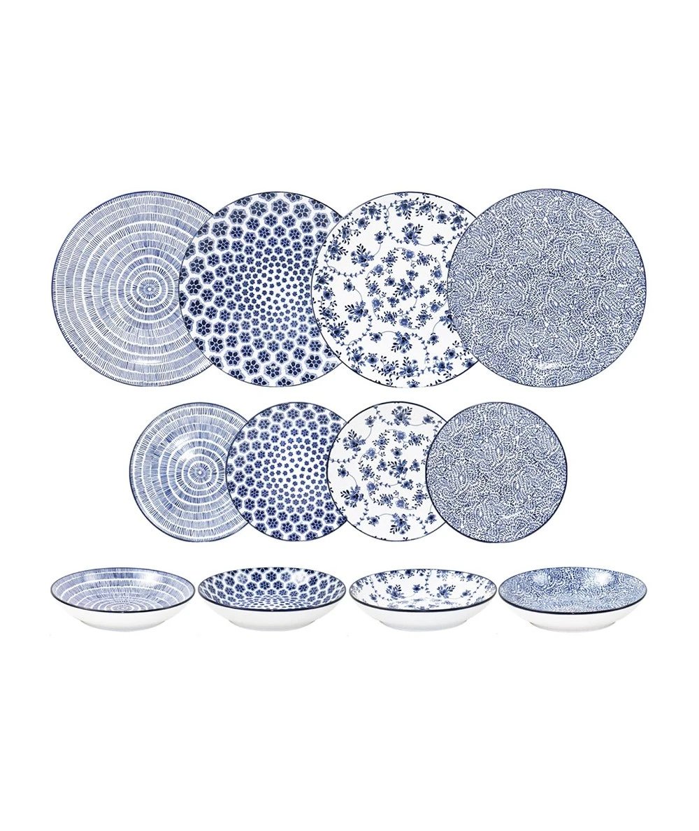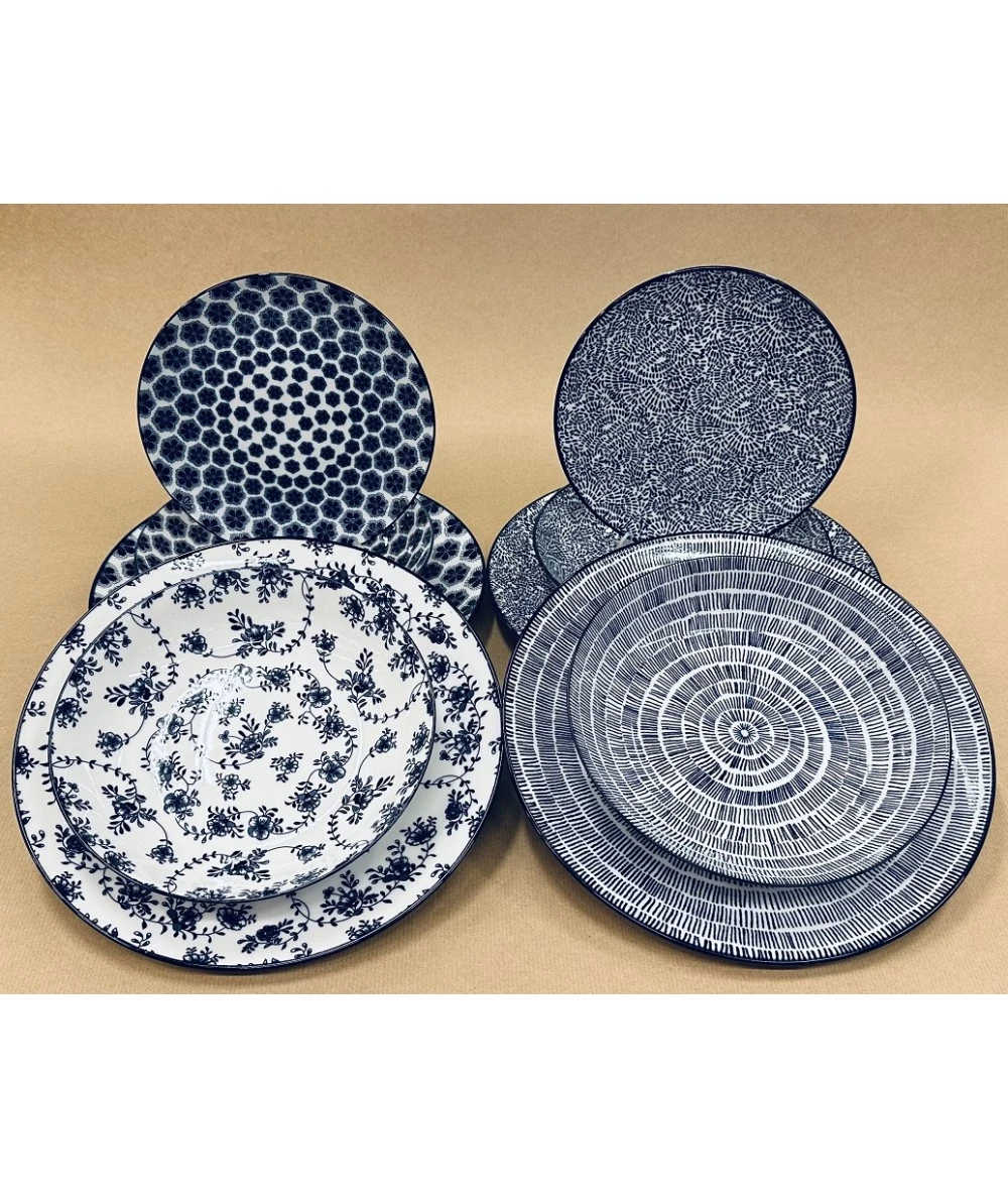 - Este set de vajilla de porcelana para 4 comensales, está compuesto por platos hondos, llanos y de postre, y ofrece 4 elegantes decorados para una mesa en armonía a través del color y la combinación de diseños.